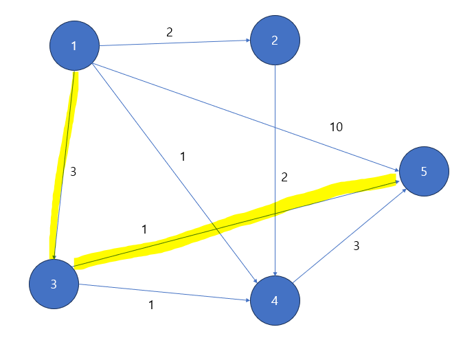 graph[s].append((c, e)) # 출발지 : [(비용, 도착지)]