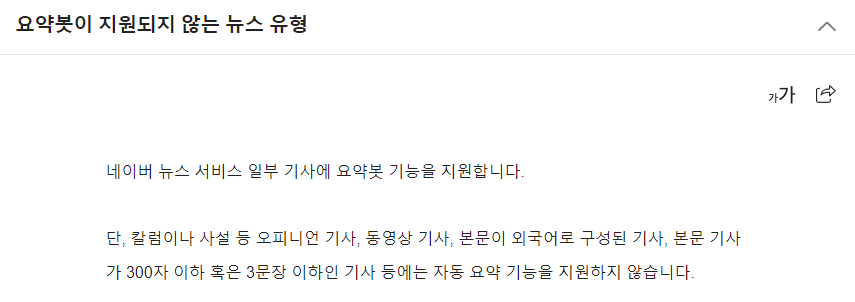 - 네이버 요약봇이 요약을 지원하지 않는 유형을 참고해 기사를 삭제