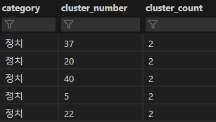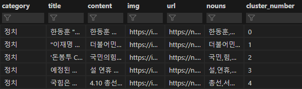 - 같은 군집 번호를 가지는 기사끼리는 거의 같은 제목을 가지는 걸 볼 수 있다.