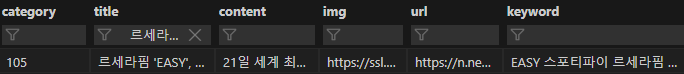 - 카테고리, 제목, 요약된 본문, 이미지, 기사 주소, 키워드 열을 가지는 데이터 프레임으로 생성