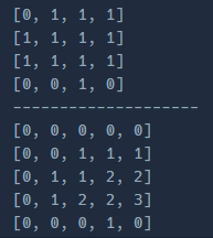 - board리스트(위) dp리스트(밑) 결과