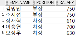 WHERE (position = '차장' OR position = '부장') AND salary > 700;