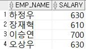 - 급여가 600 이상 700 이하인 사원 검색