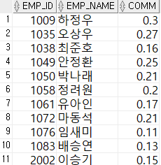 SELECT emp_id, emp_name, comm