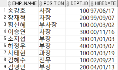 - SELECT 목록에서의 열 또는 표현식의 위치 값으로 대체될 수 있다.
