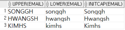 SELECT UPPER(email), LOWER(email), INITCAP(email)