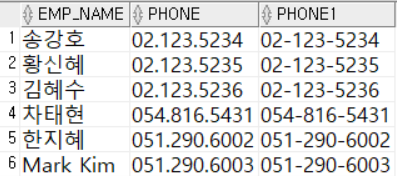 - REPLACE(char1, str1, str2) : 문자열의 특정 문자를 다른 문자로 변환