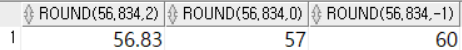 SELECT ROUND(56.834, 2), ROUND(56.834, 0), ROUND(56.834, -1)