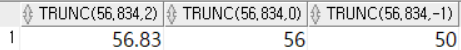 SELECT TRUNC(56.834, 2), TRUNC(56.834, 0), TRUNC(56.834, -1)