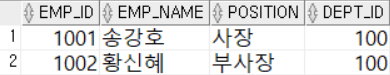 - 암시적 형변환, WHERE 절의 문자 100을 숫자 100으로 데이터 유형의 자동 변환을 수행한다.