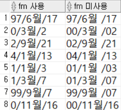 - 형식에 fm요소를 추가하여 선행 0 또는 공백을 제거해 표시