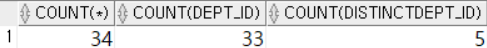 SELECT COUNT(*), COUNT(dept_id), COUNT(DISTINCT dept_id)
