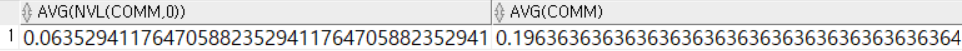 SELECT AVG(NVL(comm, 0)), AVG(comm)