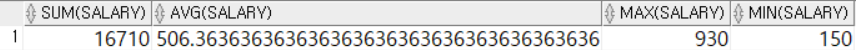 - 예) SUM(salary), AVG(salary)