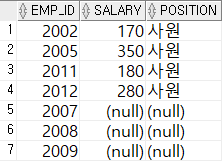 - UPDATE 대상 테이블과 서브 쿼리에서 사용하는 테이블이 서로 다른 경우도 허용