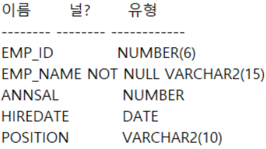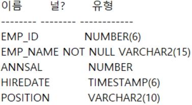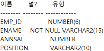 - 테이블이 정의된 열의 데이터 유형, 크기 및 기본값 등의 수정