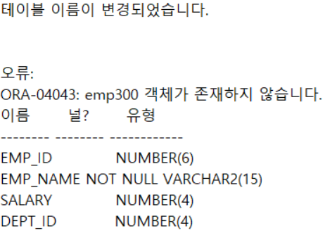 - emp300 테이블의 이름을 dept300 으로 변경하고 확인