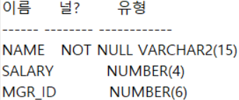- 열의 NOT NULL 여부는 DESCRIBE 명령의 결과에서 확인 가능