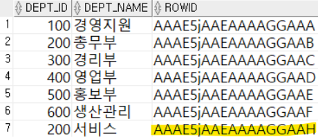 - 잘못된 데이터를 삭제하여 오류를 수정, 값이 중복되는 데이터를 삭제하는 경우 각 행의 고유 정보인 ROWID를 활용할 수 있다.