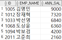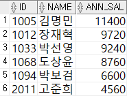 - sal200 테이블과 sal_vu200 뷰를 검색하여 ann_sal 열의 값이 UPDATE의 결과를 반영하는지 확인