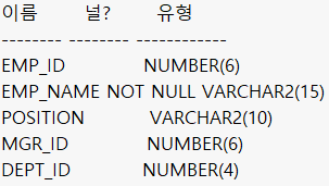 - DESCRIBE 명령 사용해 뷰의 구조 표시