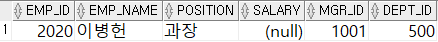 VALUES(2020, '이병헌', '과장', 1001, 500);